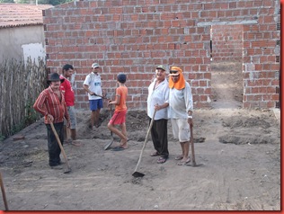 Hoje foi um dia muito cansativo mas muito bom, fomos a Duas Estradas adiatarmos a construção fizemos um mutirão de irmãos para fazer o aterro, fomos 12 pessoas ( Eu, meu pai, Alex, Josenildo, Zé Filho, Heleno, Jandiel, Marcelo, Bento, Luciano, Marcos e Juedson) fizemos todo o aterro do salão, pois o terreno tem um declive muito grande. Dias como esse proporciona uma comunhão muito grande! Louvo a Deus pela vida de cada irmão.
